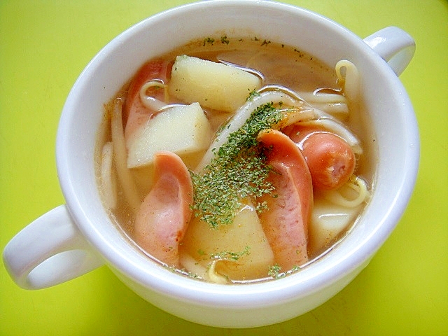 もやしとじゃがいもウインナーのカレーコンソメスープ レシピ 作り方 By Mint74 楽天レシピ