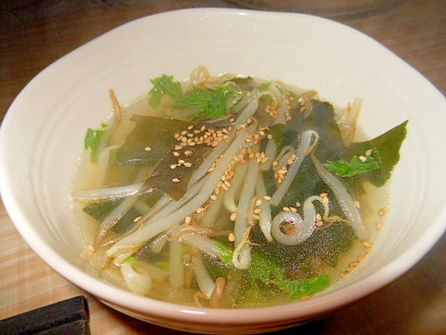 もやしとわかめのコンソメスープ レシピ 作り方 By アルプスの乙女 楽天レシピ