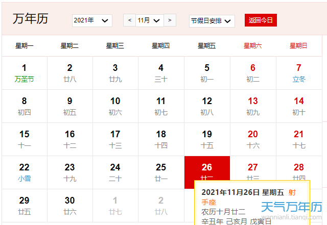 每年11月26日是什么节11月26日是什么节日 天象文学