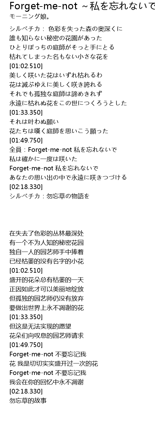 Forget Me Not 私を忘れないで 歌词 歌词网